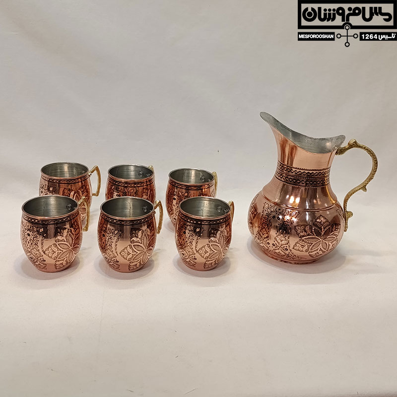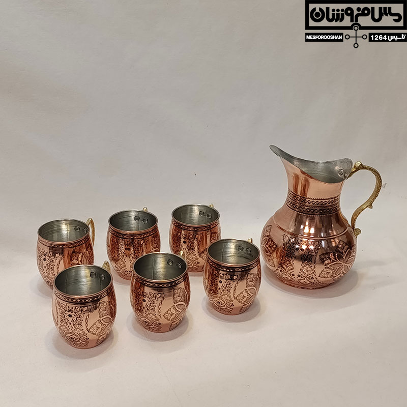 سرویس مسی پارچ و لیوان الماس تراش مدل بوتار