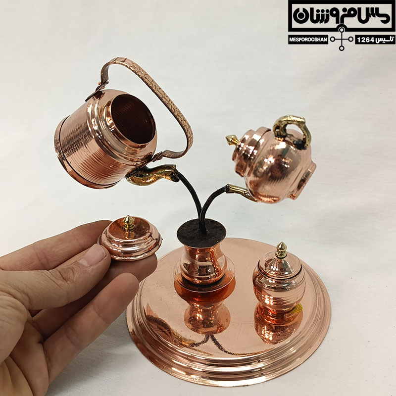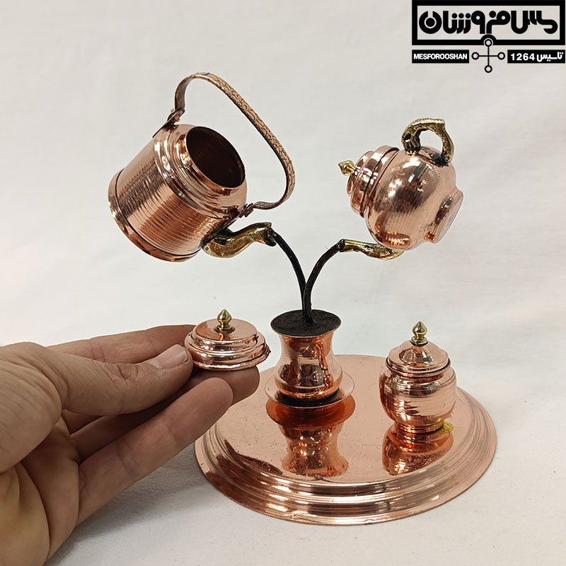 - این سرویس مسی دکوری کوچک به صورت تمام دستساز ساخته شده است.